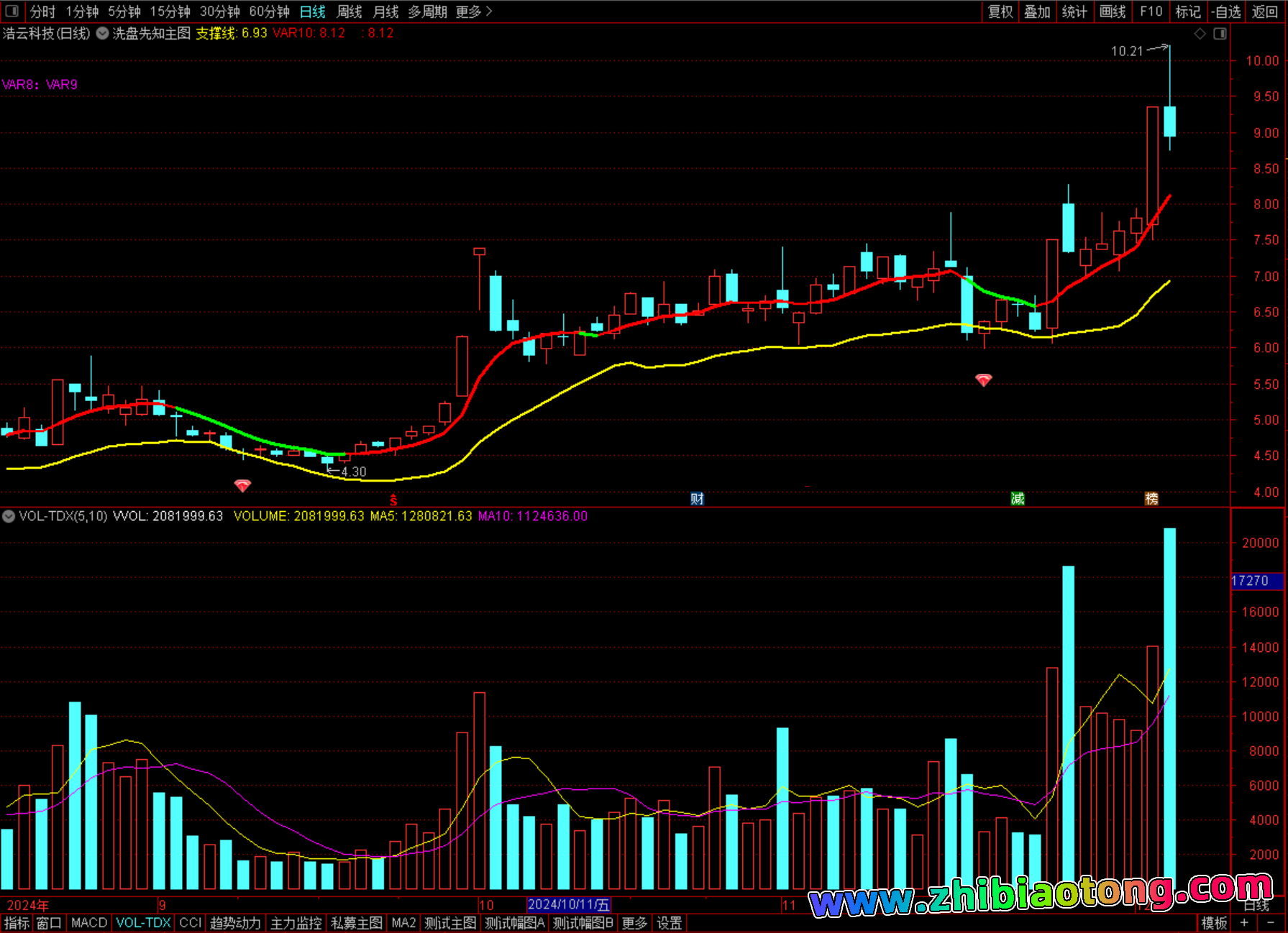支撑线:(1-9/100)*MA(C,10),COLORYELLOW,LINETHICK2;